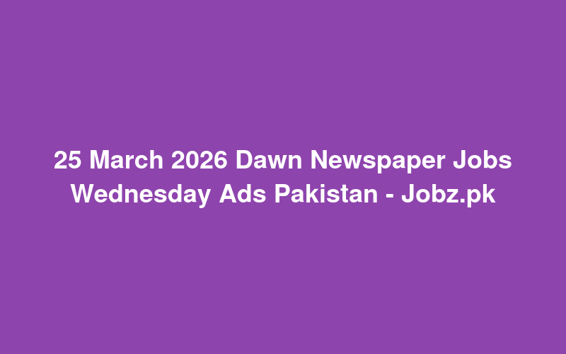 Check out this new career opening for 25 March 2026 Dawn Newspaper Jobs Wednesday Ads Pakistan - Jobz.pk in Pakistan. Review full details and apply.