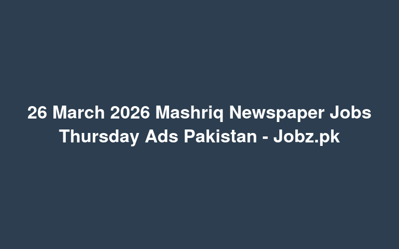 Check out this new career opening for 26 March 2026 Mashriq Newspaper Jobs Thursday Ads Pakistan - Jobz.pk in Pakistan. Review full details and apply.
