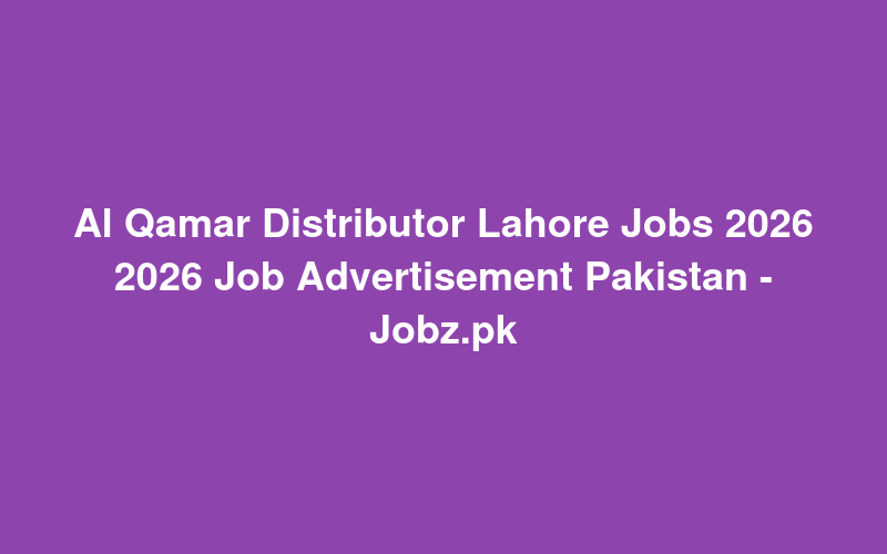 Al Qamar Distributor Lahore Jobs 2026 2026 Job Advertisement Pakistan - Jobz.pk