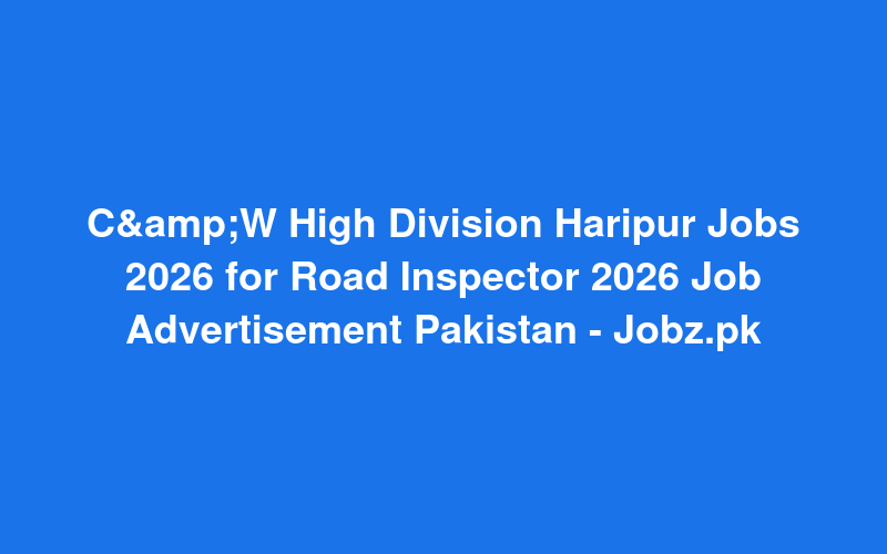 Check out this new career opening for C&W High Division Haripur Jobs 2026 for Road Inspector 2026 Job Advertisement Pakistan - Jobz.pk in Pakistan. Review full details and apply.