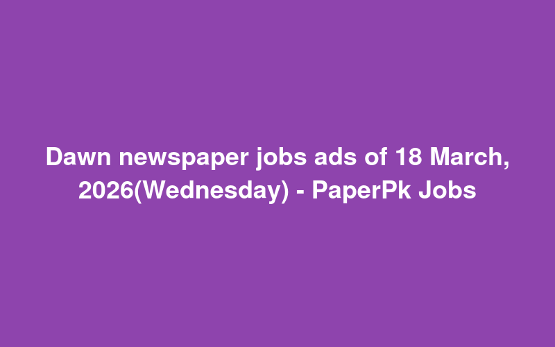 Check out this new career opening for Dawn newspaper jobs ads of 18 March, 2026(Wednesday) - PaperPk Jobs in Pakistan. Review full details and apply.