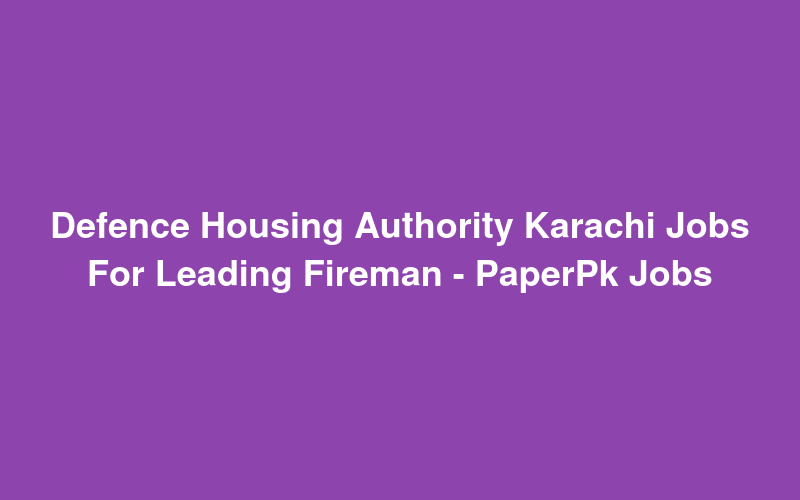 Check out this new career opening for Defence Housing Authority Karachi Jobs For Leading Fireman - PaperPk Jobs in Pakistan. Review full details and apply.