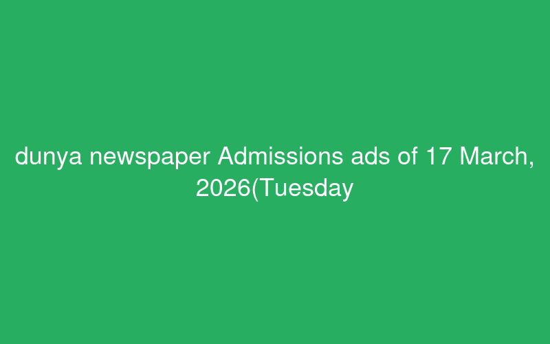 dunya newspaper Admissions ads of 17 March, 2026(Tuesday) from Pakistan as scanned advertisements - PaperPk Jobs