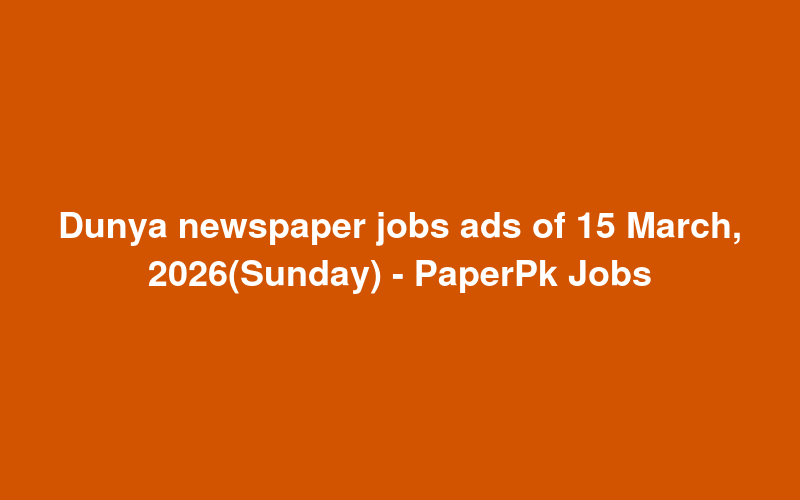 Check out this new career opening for Dunya newspaper jobs ads of 15 March, 2026(Sunday) - PaperPk Jobs in Pakistan. Review full details and apply.