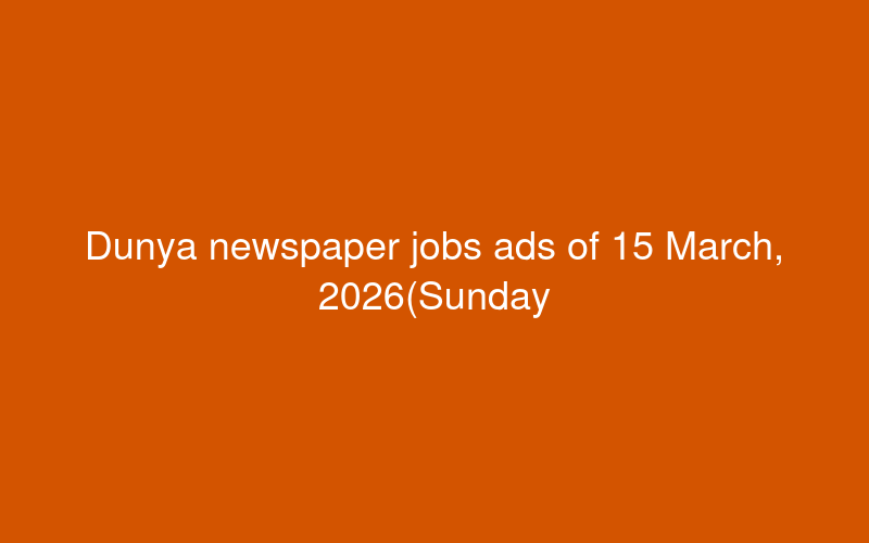 Dunya newspaper jobs ads of 15 March, 2026(Sunday) - PaperPk Jobs