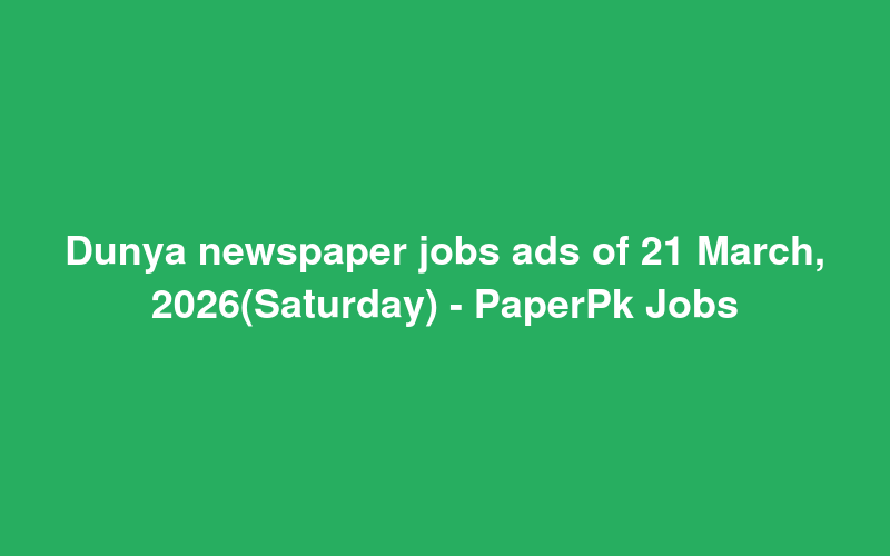 Check out this new career opening for Dunya newspaper jobs ads of 21 March, 2026(Saturday) - PaperPk Jobs in Pakistan. Review full details and apply.