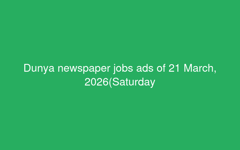 Dunya newspaper jobs ads of 21 March, 2026(Saturday) - PaperPk Jobs