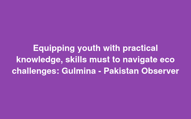 Equipping youth with practical knowledge, skills must to navigate eco challenges: Gulmina - Pakistan Observer