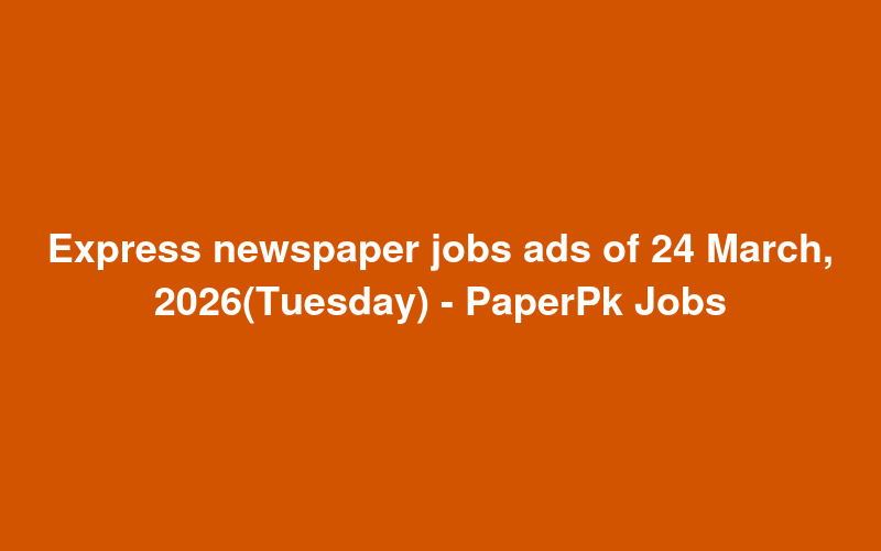 Check out this new career opening for Express newspaper jobs ads of 24 March, 2026(Tuesday) - PaperPk Jobs in Pakistan. Review full details and apply.