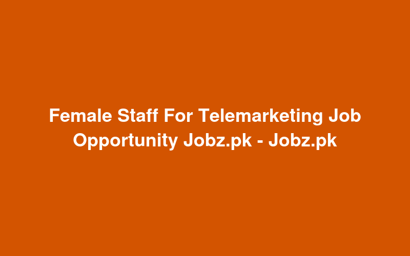 Female Staff For Telemarketing Job Opportunity Jobz.pk - Jobz.pk
