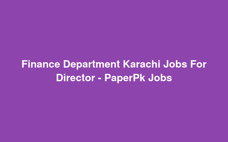 Finance Department Karachi Jobs For Director - PaperPk Jobs