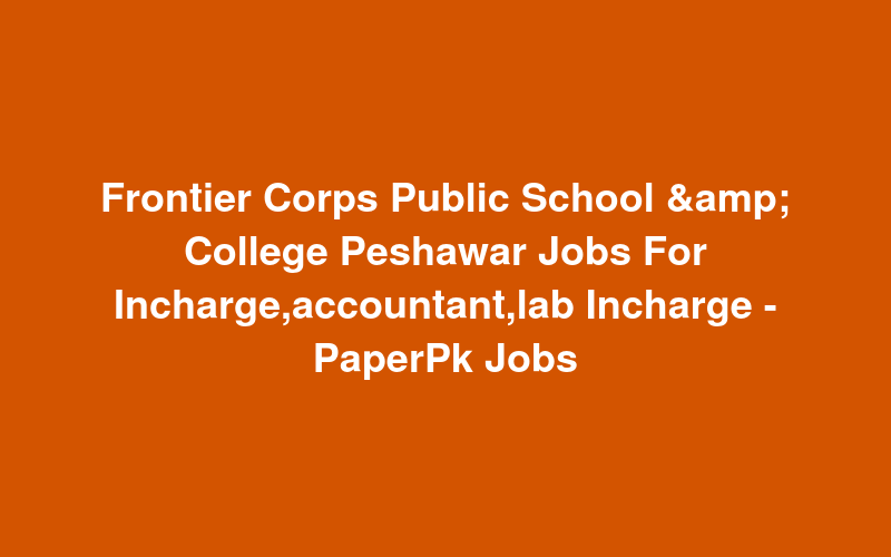 Frontier Corps Public School & College Peshawar Jobs For Incharge,accountant,lab Incharge - PaperPk Jobs