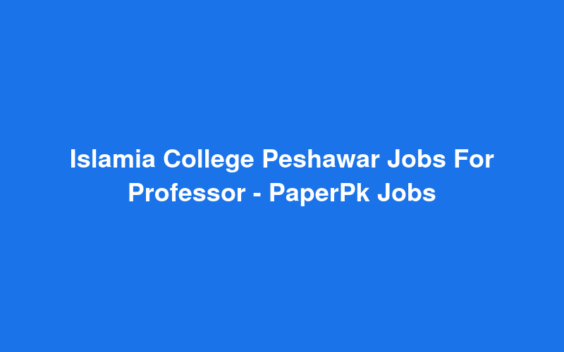 Islamia College Peshawar Jobs For Professor - PaperPk Jobs