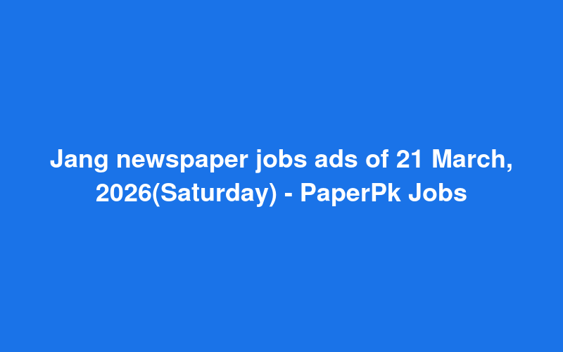 Check out this new career opening for Jang newspaper jobs ads of 21 March, 2026(Saturday) - PaperPk Jobs in Pakistan. Review full details and apply.