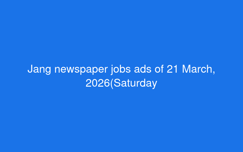 Jang newspaper jobs ads of 21 March, 2026(Saturday) - PaperPk Jobs