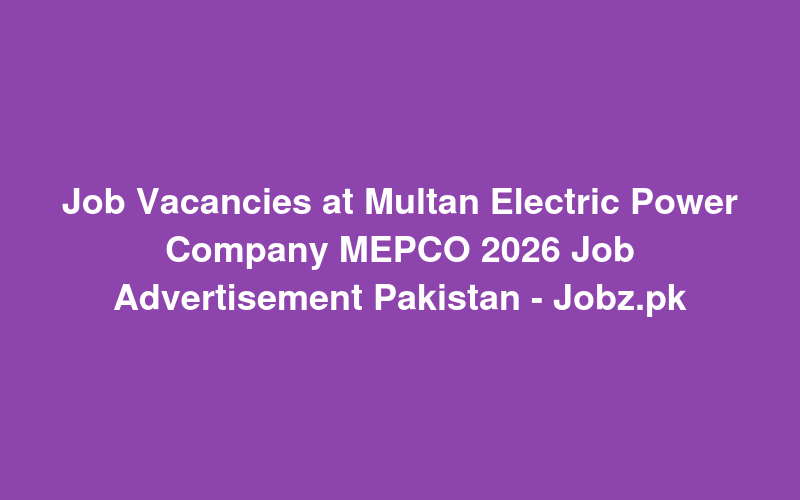 Check out this new career opening for Job Vacancies at Multan Electric Power Company MEPCO 2026 Job Advertisement Pakistan - Jobz.pk in Pakistan. Review full details and apply.