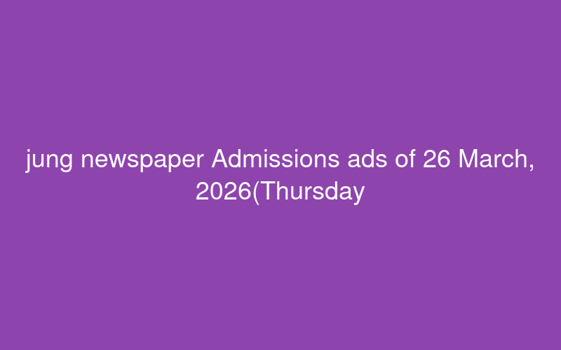 Check out this new career opening for jung newspaper Admissions ads of 26 March, 2026(Thursday) from Pakistan as scanned advertisements - PaperPk Jobs in Pakistan. Review full details and apply.