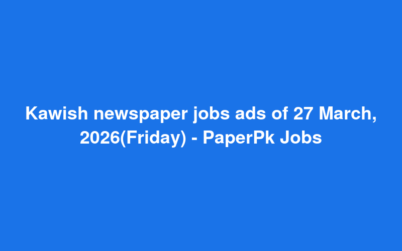 Check out this new career opening for Kawish newspaper jobs ads of 27 March, 2026(Friday) - PaperPk Jobs in Pakistan. Review full details and apply.