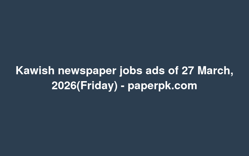 Check out this new career opening for Kawish newspaper jobs ads of 27 March, 2026(Friday) - paperpk.com in Pakistan. Review full details and apply.