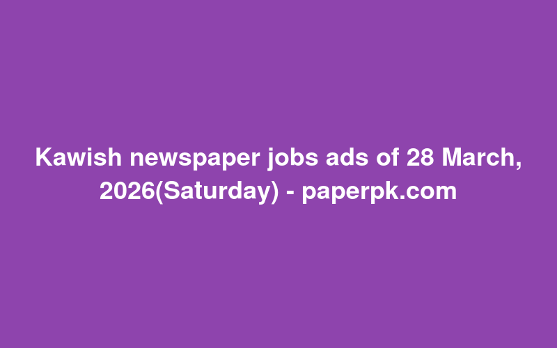 Check out this new career opening for Kawish newspaper jobs ads of 28 March, 2026(Saturday) - paperpk.com in Pakistan. Review full details and apply.