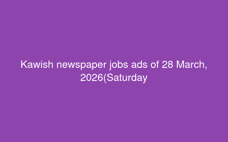 Kawish newspaper jobs ads of 28 March, 2026(Saturday) - paperpk.com
