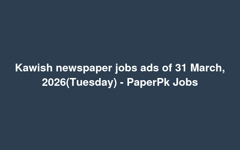 Check out this new career opening for Kawish newspaper jobs ads of 31 March, 2026(Tuesday) - PaperPk Jobs in Pakistan. Review full details and apply.