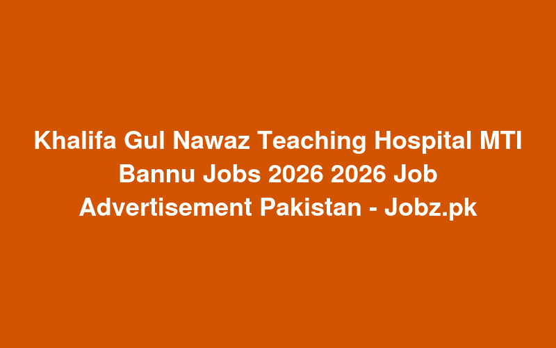 Khalifa Gul Nawaz Teaching Hospital MTI Bannu Jobs 2026 2026 Job Advertisement Pakistan - Jobz.pk