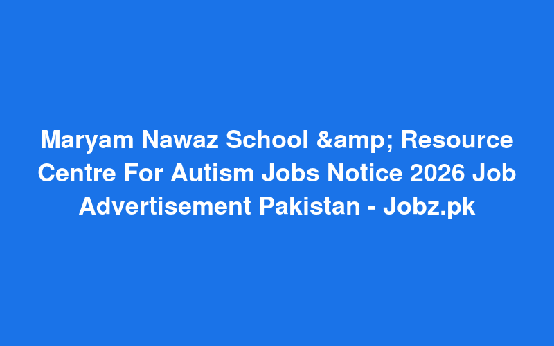 Maryam Nawaz School & Resource Centre For Autism Jobs Notice 2026 Job Advertisement Pakistan - Jobz.pk