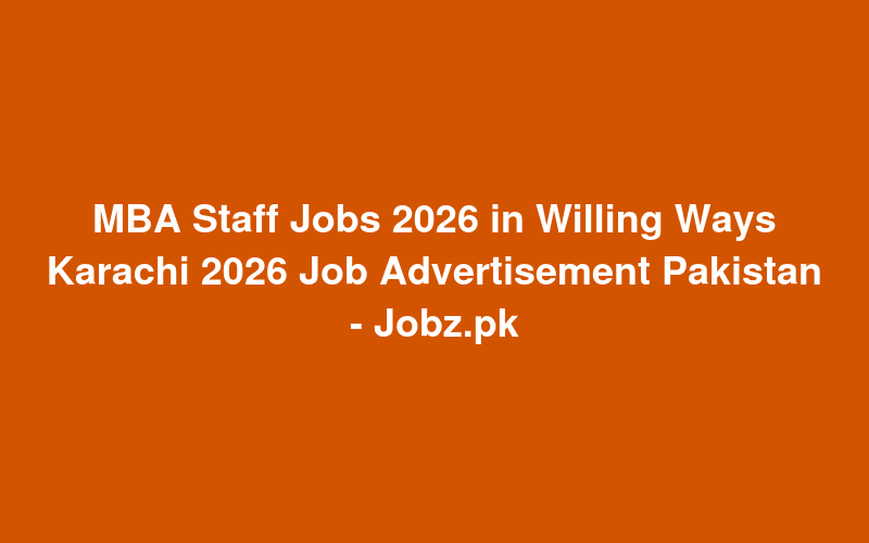 Check out this new career opening for MBA Staff Jobs 2026 in Willing Ways Karachi 2026 Job Advertisement Pakistan - Jobz.pk in Pakistan. Review full details and apply.