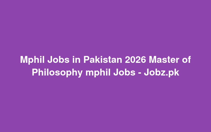 Mphil Jobs in Pakistan 2026 Master of Philosophy mphil Jobs - Jobz.pk