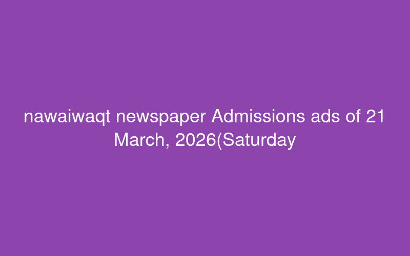 nawaiwaqt newspaper Admissions ads of 21 March, 2026(Saturday) from Pakistan as scanned advertisements - PaperPk Jobs