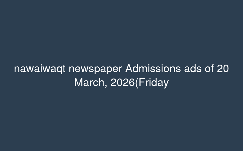 Check out this new career opening for nawaiwaqt newspaper Admissions ads of 20 March, 2026(Friday) from Pakistan as scanned advertisements - PaperPk Jobs in Pakistan. Review full details and apply.