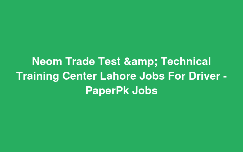 Neom Trade Test & Technical Training Center Lahore Jobs For Driver - PaperPk Jobs