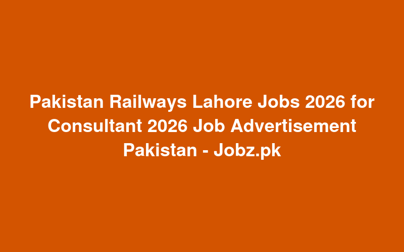 Check out this new career opening for Pakistan Railways Lahore Jobs 2026 for Consultant 2026 Job Advertisement Pakistan - Jobz.pk in Pakistan. Review full details and apply.