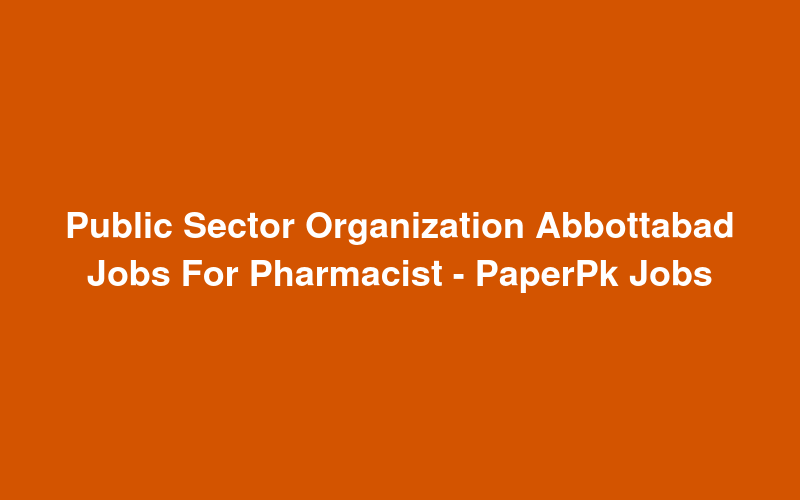 Public Sector Organization Abbottabad Jobs For Pharmacist - PaperPk Jobs