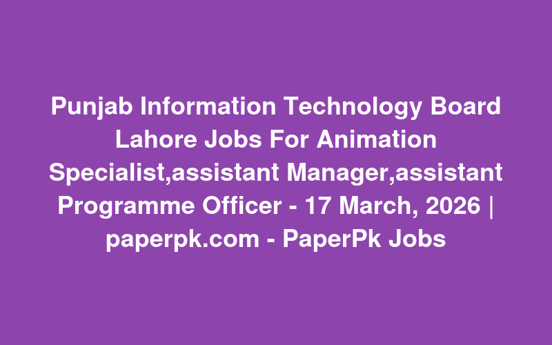 Punjab Information Technology Board Lahore Jobs For Animation Specialist,assistant Manager,assistant Programme Officer - 17 March, 2026 | paperpk.com - PaperPk Jobs
