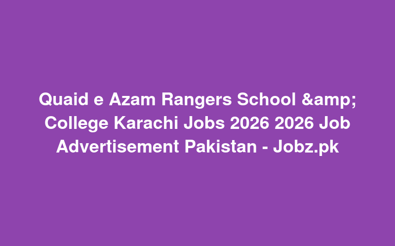 Quaid e Azam Rangers School & College Karachi Jobs 2026 2026 Job Advertisement Pakistan - Jobz.pk