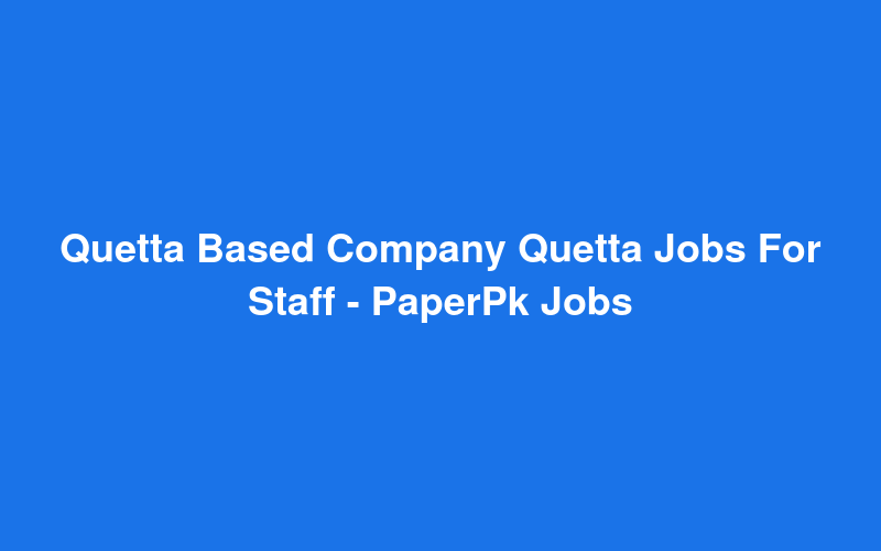 Check out this new career opening for Quetta Based Company Quetta Jobs For Staff - PaperPk Jobs in Pakistan. Review full details and apply.