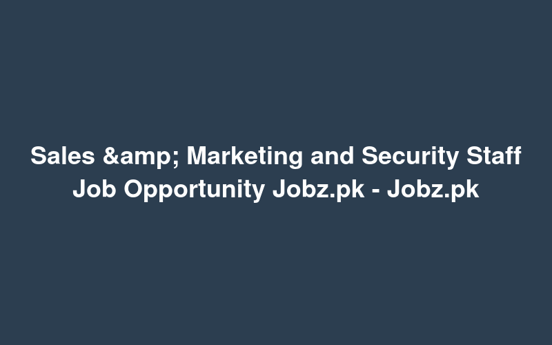 Sales & Marketing and Security Staff Job Opportunity Jobz.pk - Jobz.pk