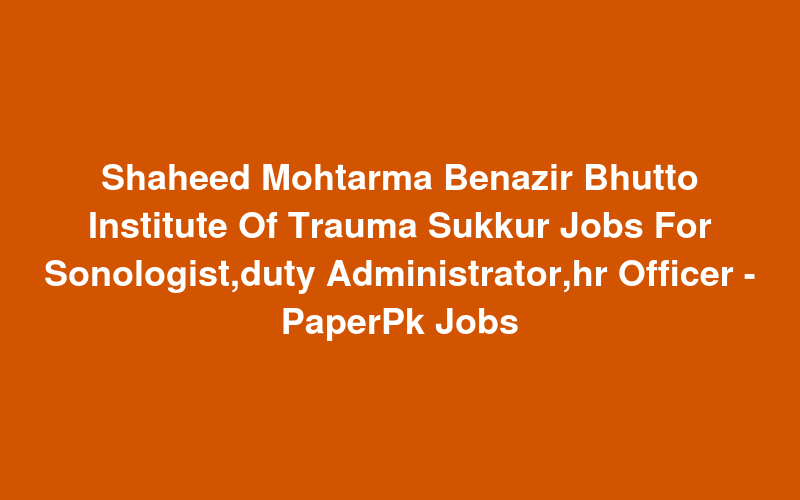 Shaheed Mohtarma Benazir Bhutto Institute Of Trauma Sukkur Jobs For Sonologist,duty Administrator,hr Officer - PaperPk Jobs