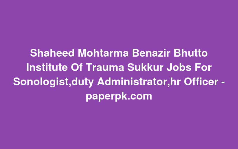 Shaheed Mohtarma Benazir Bhutto Institute Of Trauma Sukkur Jobs For Sonologist,duty Administrator,hr Officer - paperpk.com