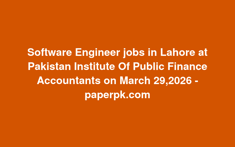 Check out this new career opening for Software Engineer jobs in Lahore at Pakistan Institute Of Public Finance Accountants on March 29,2026 - paperpk.com in Pakistan. Review full details and apply.