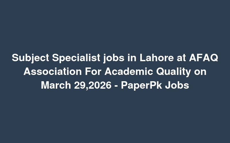 Check out this new career opening for Subject Specialist jobs in Lahore at AFAQ Association For Academic Quality on March 29,2026 - PaperPk Jobs in Pakistan. Review full details and apply.