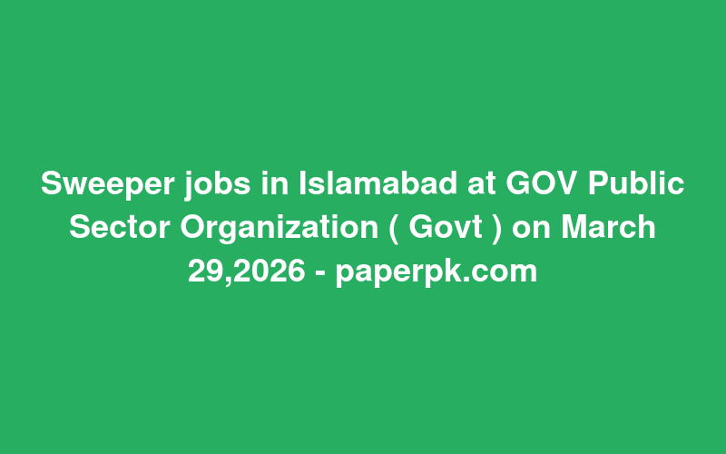 Check out this new career opening for Sweeper jobs in Islamabad at GOV Public Sector Organization ( Govt ) on March 29,2026 - paperpk.com in Pakistan. Review full details and apply.