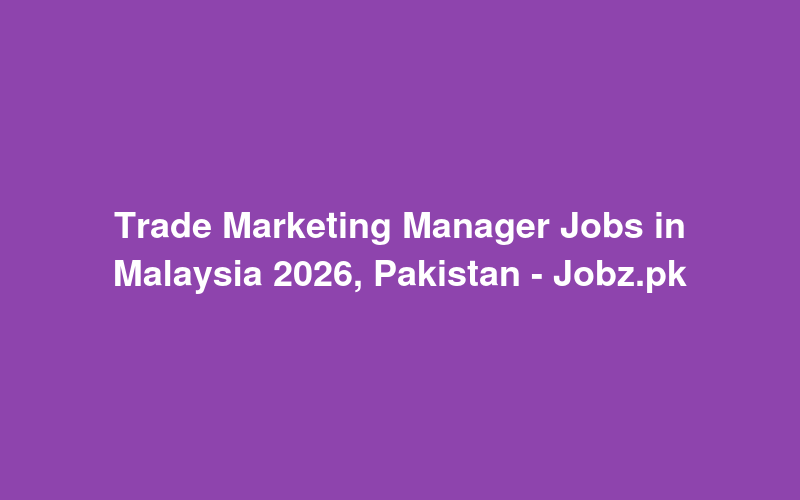 Trade Marketing Manager Jobs in Malaysia 2026, Pakistan - Jobz.pk