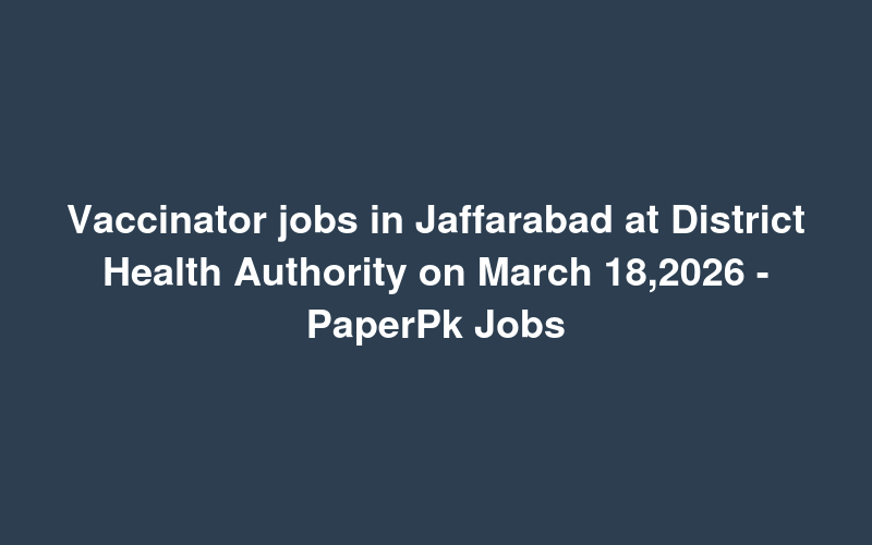 Check out this new career opening for Vaccinator jobs in Jaffarabad at District Health Authority on March 18,2026 - PaperPk Jobs in Pakistan. Review full details and apply.