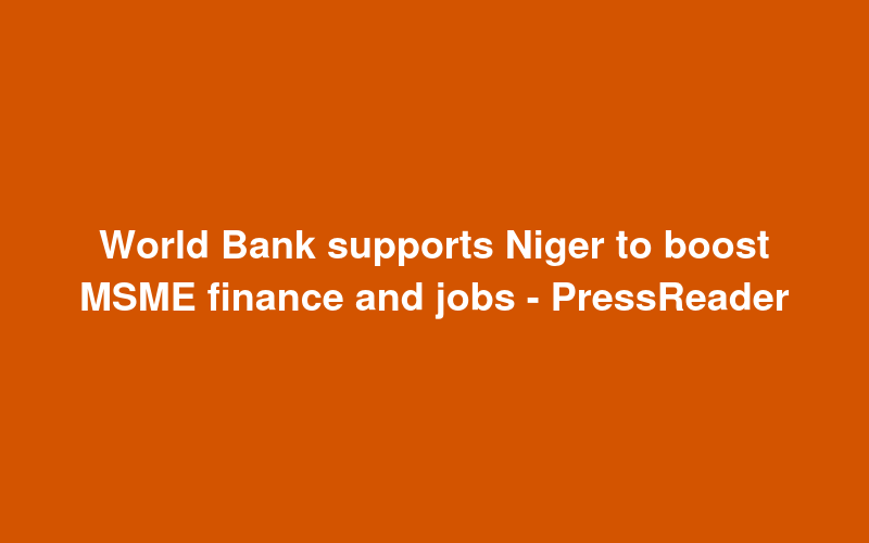 World Bank supports Niger to boost MSME finance and jobs - PressReader