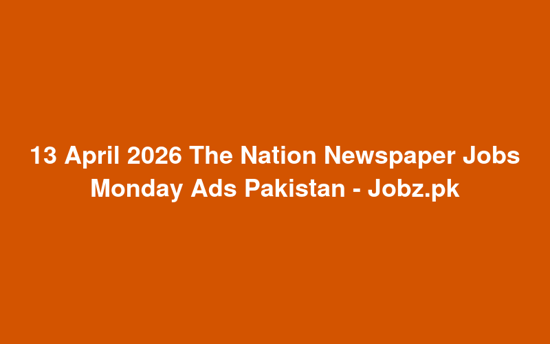 Check out this new career opening for 13 April 2026 The Nation Newspaper Jobs Monday Ads Pakistan - Jobz.pk in Pakistan. Review full details and apply.