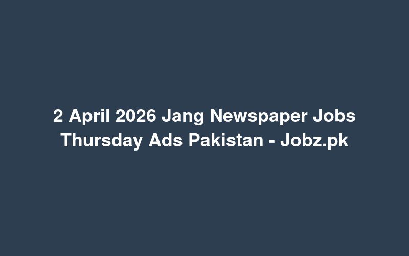 Check out this new career opening for 2 April 2026 Jang Newspaper Jobs Thursday Ads Pakistan - Jobz.pk in Pakistan. Review full details and apply.