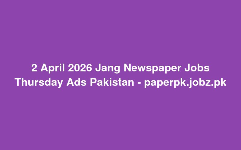 Check out this new career opening for 2 April 2026 Jang Newspaper Jobs Thursday Ads Pakistan - paperpk.jobz.pk in Pakistan. Review full details and apply.
